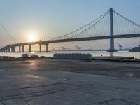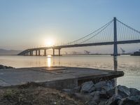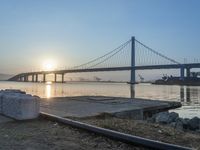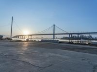A stunning view of a city skyline at dawn, overlooking the coastal waters