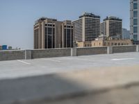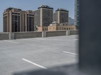 A concrete road leads down the profile of a parking deck in Salt Lake City, USA, on a cloudy day.