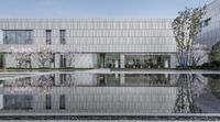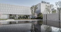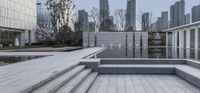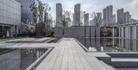 A stunning view of the city at dawn in Chongqing, China, with its modern architecture and skyscrapers reflecting on the calm water of the lake.
