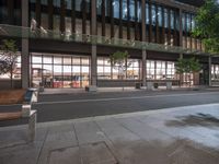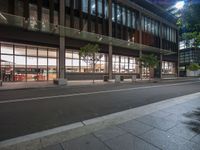 Cityscape at Night with Office Buildings and Streetlights