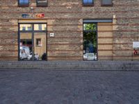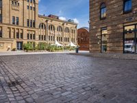 A beautiful classic architecture building in Berlin, Germany. The building features a stunning brick wall with a cobblestone road surface in front. The urban setting adds to the charm of this European city.