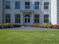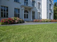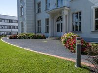 A lush green grass and gravel surface surrounds a classic residential home in Berlin, Germany. This typical farmhouse villa is an example of the unique architecture found in Europe, blending agriculture and open space with the city's museum-like profile.