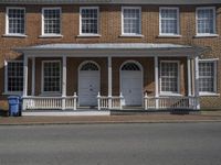 A beautiful brownstone house in a residential area of Tennessee, showcasing classic architecture and a sunny atmosphere.