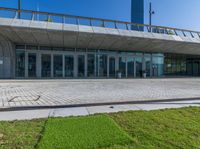 A clear sky day in Hong Kong, showcasing the paver surface of the open space where people can enjoy shopping and dining at various restaurants, shops, and storefronts.
