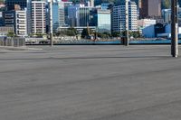 A clear sky day in New Zealand, showcasing the vibrant business district along the coastal area with office buildings and a pier jetty.