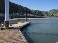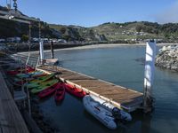A high view of the ocean and sea along the California coast, with wooden piers and harbors on a clear day.