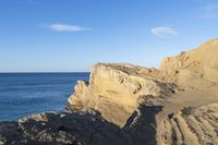 an image of the view from a cliff overlooking the ocean and sky in winter time