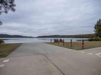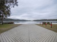 A gloomy day at the coastal landscape with a pier extending into the ocean under a grey sky.