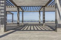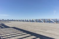 a balcony is overlooking a lake in the distance and mountains in the background on the right