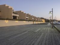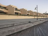 A wooden pier juts out into the ocean at dawn, with clear skies and a calm water surface.