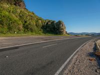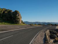Scenic view of a coastal road winding through a mountain landscape on a sunny day