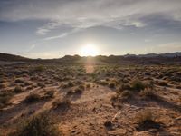 An early morning drive through the rugged wilderness of Colorado, USA. The dirt road winds through the picturesque landscape, with mountains and open spaces on either side. The sunlight breaks through the clouds on the horizon, casting a warm glow on the gravel path. This off-road track offers a thrilling adventure in the natural environment, surrounded by snow-capped peaks and sand dunes.