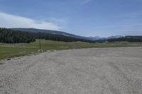 Scenic view of the Colorado landscape with beautiful mountains, expansive open spaces, and lush green forests. This serene natural environment in the USA offers a picturesque scene with clear skies, grassy plains, and winding roads leading through the wilderness. The mountain range in the distance adds to the charm of this peaceful setting near Telluride.