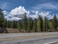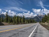 Journey through the rural landscapes of Colorado, where asphalt roads stretch straight down the mountains under the vast American sky. Clouds drift lazily above as nature paints a breathtaking scene, with one quarter of the road disappearing into the horizon. Experience the beauty of the USA's rugged terrain, where every road leads to a new mountain adventure.