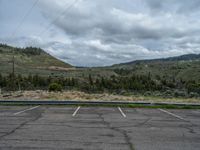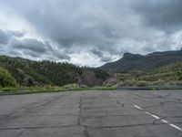 In the heart of Colorado, a road stretches across the landscape, surrounded by open spaces and nature. The grey sky adds a touch of gloom, creating a dramatic atmosphere. As you drive along the asphalt surface, you pass by parking lots and enjoy the profile of the surrounding scenery. This road is a gateway to the beauty and vastness of the USA, inviting you to explore the natural wonders that await.