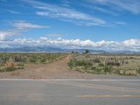 In the heart of rural Colorado, a straight road cuts through the open landscape. The gravel surface leads the way, surrounded by the natural beauty of the USA. Clouds dot the sky overhead as the road winds its way through the countryside. The dirt and sand streets blend seamlessly with the surrounding environment, creating a peaceful and serene atmosphere. Take a journey down this road and immerse yourself in the beauty of nature and the simplicity of rural life.
