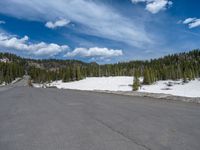 In the heart of Colorado, a scenic road cuts through the snowy landscape. The one-quarter profile road is surrounded by breathtaking views of the picturesque lake and majestic mountains. The winter scene is enhanced by the tranquil atmosphere and the reflection of the clouds on the calm water. As you drive along the asphalt road, you can't help but be in awe of the natural beauty that the USA has to offer.