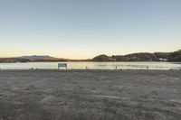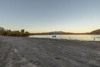 The sun rises over a coastal landscape, casting a warm glow on the water and creating a peaceful atmosphere.