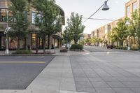 Aerial view of the urban neighborhood in Denver, Colorado, USA. The city is known for its impressive architecture, bustling downtown area, and well-maintained residential properties. The clear sky highlights the office buildings, shops, and storefronts lining the streets. The tree-lined roads, open spaces, and crosswalks provide a pleasant and safe environment for the residents and visitors alike.
