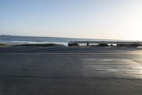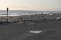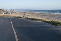 The dawn of a new day in Los Angeles, California, USA showcases the coastal city's vast infrastructure, natural landscape, and recreational spaces. Asphalt roads stretch through the suburban area, with the ocean shoreline in the background, and the sun's rays shining down on the roadway, sand, and trees. The calm and peaceful scene is perfect for a vacation or just a break from the daily grind.