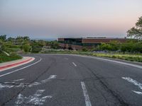A one quarter view of the modern architecture and asphalt road in Salt Lake City, Utah, USA at break of day with a clear sky.