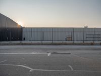 An industrial storage facility in Salt Lake City, USA set against a clear sky at the break of day. The gravel and dirt surface is surrounded by vegetation, providing a stark contrast to the factory and warehouse profiles.