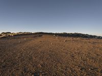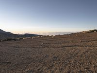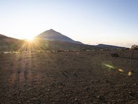 The morning sun rises over a coastal desert landscape of cliffs, mountains, and open space, with waves crashing against the shore and a clear sky in the background.
