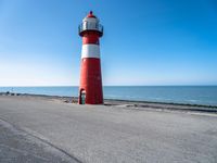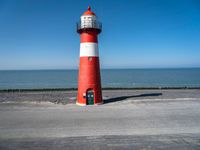 A tranquil day in Holland reveals the beauty of the coastal landscape - from the azure ocean to the liquid lake, the open space of the beach and the profile of the lighthouse tower, all framed by the clear European sky.
