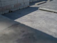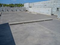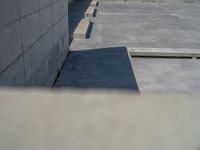 In the vibrant city of Zaragoza, Spain, modern architecture and urban design take center stage. The city boasts a mix of elevated structures and open spaces, with a stunning plaza as its focal point. The concrete walls provide a striking contrast against the clear blue sky, casting long shadows that add depth and character to the urban landscape. From a high position, one can admire the city's bustling life and appreciate the harmonious blend of contemporary and traditional elements.