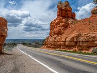 Scenic Byway 12 in Utah, USA offers a breathtaking road trip experience. As you drive along the winding asphalt road, you'll be captivated by the stunning landscape. Majestic mountains rise in the distance, while vibrant red rock formations dominate the foreground. The clear blue sky and fluffy white clouds add to the natural beauty of the scene. Take in the awe-inspiring views as you journey straight down the road, immersing yourself in the untouched nature of Utah's scenic byway.