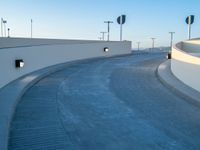 View of a residential driveway in a suburb of Los Angeles, USA, with a parking lot and parking deck in the foreground, and a hard shadow cast by the one quarter quarter of the sun at the break of day.