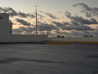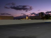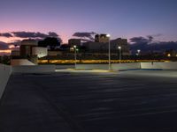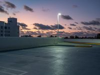 A hard shadow created by the artificial light of street lights casts across the concrete surface of a parking garage in Miami Beach, Florida at the break of day.