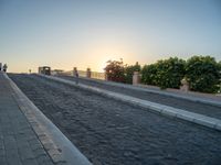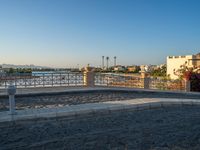 Located on Egypt's coastal residential area, a modern bridge spans over the ocean, connecting the urban landscape with the pier and jetty. The break of day reveals a clear sky and the sun shining over the cobblestone road. Modern architecture profiles the skyline, while the harbor bustles with activity under the sunny African sky. Residential quarters line the road near the bridge, offering a picturesque view of the ocean and urban life.