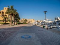 Along Egypt's coastal skyline, the break of day reveals a serene harbor with a pier extending into the ocean. The clear sky above frames the marina and jetty, offering open spaces for a peaceful stroll. Pavers line the surface as one quarter of the city wakes up to the tranquil beauty of the waterfront. The straight road leads to a picturesque landing, where the harmony of land and water creates a mesmerizing scene.