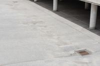 A high-rise building with beige-colored architecture stands tall in the urban cityscape of Toronto, Ontario, Canada. The concrete walkway and handrail lead to an elevated open space, providing a scenic view of the city. The parking deck below and the bridge over the water add to the bustling urban atmosphere.