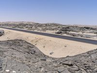 An endless road surrounded by the breathtaking African desert landscape.
