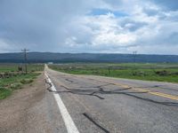 In the heart of rural Utah, a straight road stretches endlessly through fields of agriculture. The landscape is dotted with clouds in the sky, offering a picturesque view of nature's beauty. As you drive along the asphalt road, the vastness of the surroundings becomes evident. The road seems to go on for miles, leading you deeper into the rural charm of this American state. With its peaceful and serene atmosphere, this road is a perfect escape from the hustle and bustle of city life.