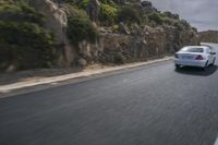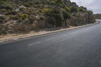 A scenic road with a yellow line cutting through the African landscape in South Africa, surrounded by mountains and vegetation. The road surface is made of asphalt, with a clear sky and clouds in the background.