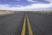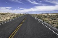 An endless road stretches through the vast Utah desert landscape, surrounded by red rock canyons, mountains, and grassy plains.