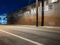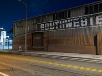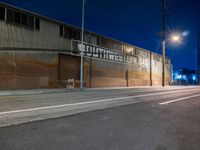 In the heart of Los Angeles, the Arts District transforms under artificial light. Industrial warehouses and factories line the asphalt roads, creating a captivating urban profile. At night, the clear California sky frames the district's storerooms and depots, with a blend of light and shadows painting a vivid picture of the city's industrial roots. This area is a testament to the vibrant life of LA's manufacturing and artistic fusion.