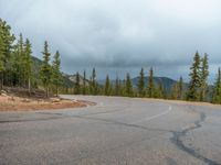 Traveling through Colorado's scenic landscapes, the road winds towards the iconic Pikes Peak under a gloomy grey sky. Asphalts stretch as far as the eye can see, with clouds casting shadows over the vast nature. The one-quarter mark on the road signifies the journey ahead, offering a glimpse of the picturesque USA terrain.