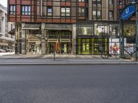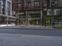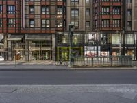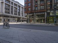A view of Friedrichstraße in Berlin, Germany, showing the mixed-use architecture, public spaces, and storefronts of this modern urban neighborhood. People are out and about, exploring the town, and taking in the bustling city life, with vehicles passing by in the foreground. Tourists can be seen admiring the unique facades of the buildings and making use of the infrastructure such as the subway station and telephone booth.