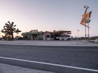 In the heart of Los Angeles, discover motels nestled between desert landscapes and suburban calm. With clear skies and asphalt roads, the scene is set for a perfect dawn in California. The motels offer a unique profile of USA's suburban life, blending the tranquility of the desert with the vibrant energy of the city. Experience the charm of staying in a motel that captures the essence of both desert and city life.