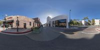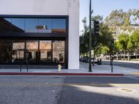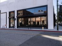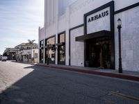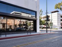 In Los Angeles, California, modern architecture defines the urban landscape. Clear skies illuminate asphalt roads lined with shops and storefronts, creating a vibrant day scene in this iconic USA city. The city's dynamic profile showcases a fusion of modernity and traditional urban elements.