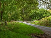 Nestled in New Zealand's North Island, the lush greenery and towering mountains create a picturesque landscape. Asphalt roads lead straight through forests and grassy areas, under a canopy of trees and fluffy clouds. This serene scenery captures the essence of Asia's natural beauty, with one quarter of the road offering a tranquil journey through the stunning surroundings.