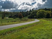 Located in the North Island of New Zealand, the lush greenery and agricultural fields create a picturesque scene. Straight roads cut through the rural landscape, leading towards majestic mountains in the distance. Clouds drift lazily overhead, casting shadows on the asphalt roads. The combination of vibrant green fields and clear skies makes this area a peaceful retreat in Asia-Pacific.