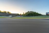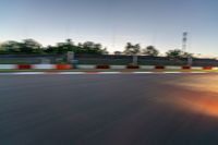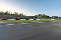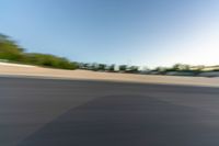 Located in Germany, the Nürburgring Nordschleife is a legendary race track in Europe. The asphalt road winds through the landscape, featuring challenging curves and straightaways. At dawn, under a clear sky, the motion blur of racing cars adds excitement to the scene. The profile of the track showcases its one-quarter section, where race enthusiasts can experience the thrill of high-speed racing.