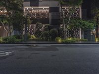 A nighttime view of the bustling streets of Taipei, Republic of China, featuring modern architecture, urban design, and a variety of vegetation, including trees and shrubs. Artificial lights, traffic lights, and street lights illuminate the asphalt road surface and the grassy curb, while yellow tints and shades of black, green, and gray provide a unique contrast to the colorful landscape.