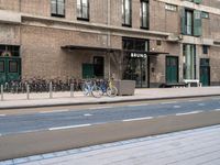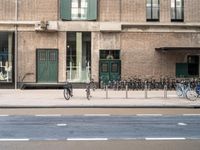 A cyclist rides down a classic brick alleyway in the heart of the Netherlands' business district, Amsterdam. The bustling city offers plenty of cafes and shops to explore, with its unique modern urban design, and classic European architecture providing the perfect backdrop.
