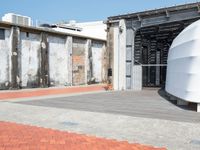 Exploring the urban art district of Kaohsuing, Taiwan, with its brick and wood walls, wood floors, dirt and paver surfaces, and clear blue skies.